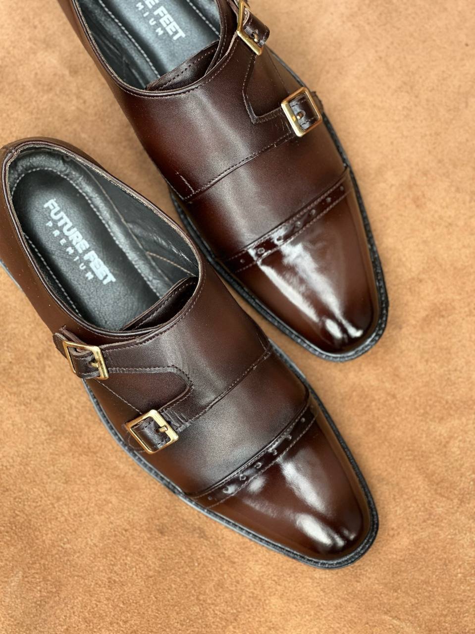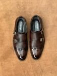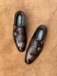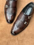 Dark Ruby Glossy Toe Full Grain Cow Leather Double Monk Strap Oxford Shoe
