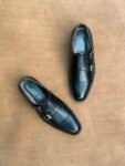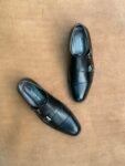 Jet Black Full Grain Cow Leather Double Monk Strap Shoe
