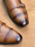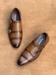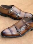 Two-Toned Tan Full Grain Cow Leather Double Monk Strap Shoe